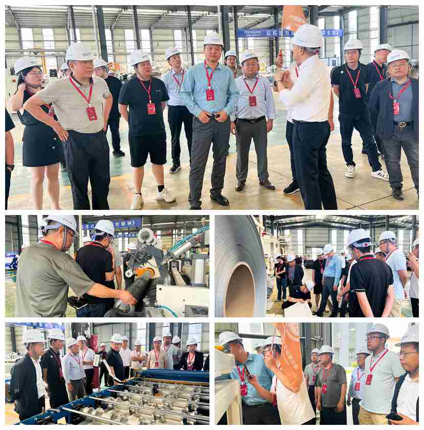 在歐西盾工作人員的引導(dǎo)下,青年企業(yè)家們踏入生產(chǎn)車間,近距離觀摩 TPO/PVC、TPS復(fù)合鋼板生產(chǎn)線,整個(gè)生產(chǎn)流程環(huán)環(huán)相扣。從原料配比的嚴(yán)格把控,到成品包裝前的多道檢測(cè)工序,清晰展現(xiàn)出歐西盾在防水領(lǐng)域精益求精的工藝水準(zhǔn)與嚴(yán)苛的質(zhì)量管控體系。